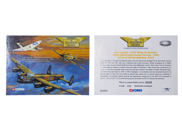 Corgi Battle Of Britain Limited Edition 3 Model Set. Hurricane, Lancaster & Spitfire. AA32602