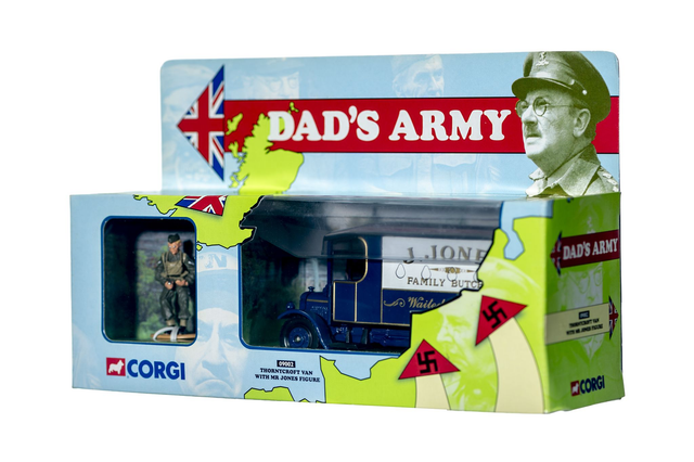 Highly collectible Corgi model (09002) dated 2000. Comes complete with L/Cpl Jones figure & Thorneycroft van in J Jones Family Butcher livery. Just as it's depicted in the popular tv comedy series.