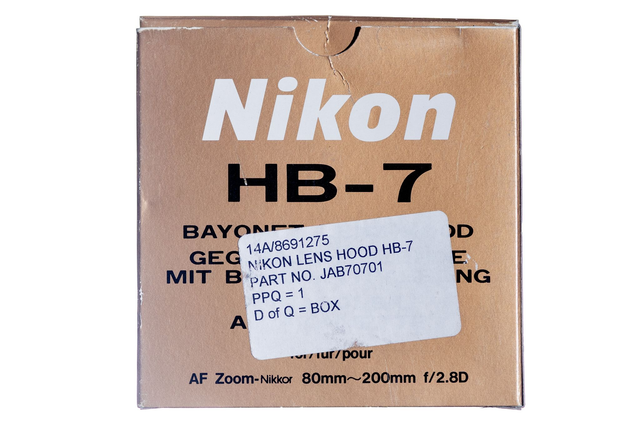 The Nikon HB-7 Lens Hood is the perfect accessory to protect your camera lens and block unwanted light while shooting. This lens shade is designed to fit seamlessly onto your Nikon lens and serve as a protective hood against scratches, bumps, and other sources of damage. The camera hood also provides light blockage, reducing the risk of lens flare and unwanted reflections in your images. With this lens protector, you can feel confident that your camera equipment is well-protected and you are getting the best possible shots every time. As supplied with the 80 - 200mm F2.8 lens.