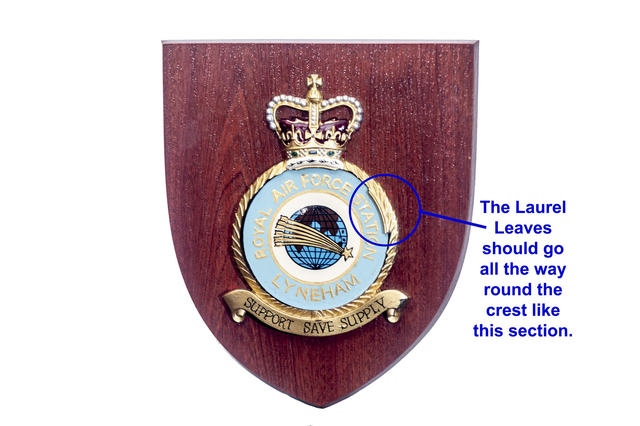 Add a touch of history to your space with this authentic handmade RAF Lyneham station plaque by Present Arms International. Crafted with meticulous detail, this relief shield emblem is hand-painted The crest boasts a depth of approx. 5mm. The overall dimensions are 18Cms high X 15 Cm wide X 2 Cms deep.